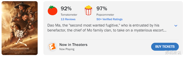 据海外评分网站显示,《镖人》的烂番茄新鲜度是92%,距离满分之差8%。爆米花指数更是高达97%,仅差3%就达到满分。