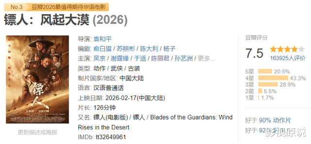 《镖人》海外口碑爆了,评分接近满分,全球总票房有望破纪录。